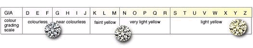 Pour classifier les Diamants selon leur blancheur, il a été mis en place de nombreuses échelles de couleurs de par le passé jusqu'à une quasi standardisation avec l’échelle établie par le laboratoire GIA. Cette échelle s’étale de la lettre D à la lettre Z, D étant l’absence totale de couleur et Z décrivant une pierre fortement teintée mais à la couleur pas assez intense pour pouvoir être qualifiée de couleur fantaisie (ou fancy color).